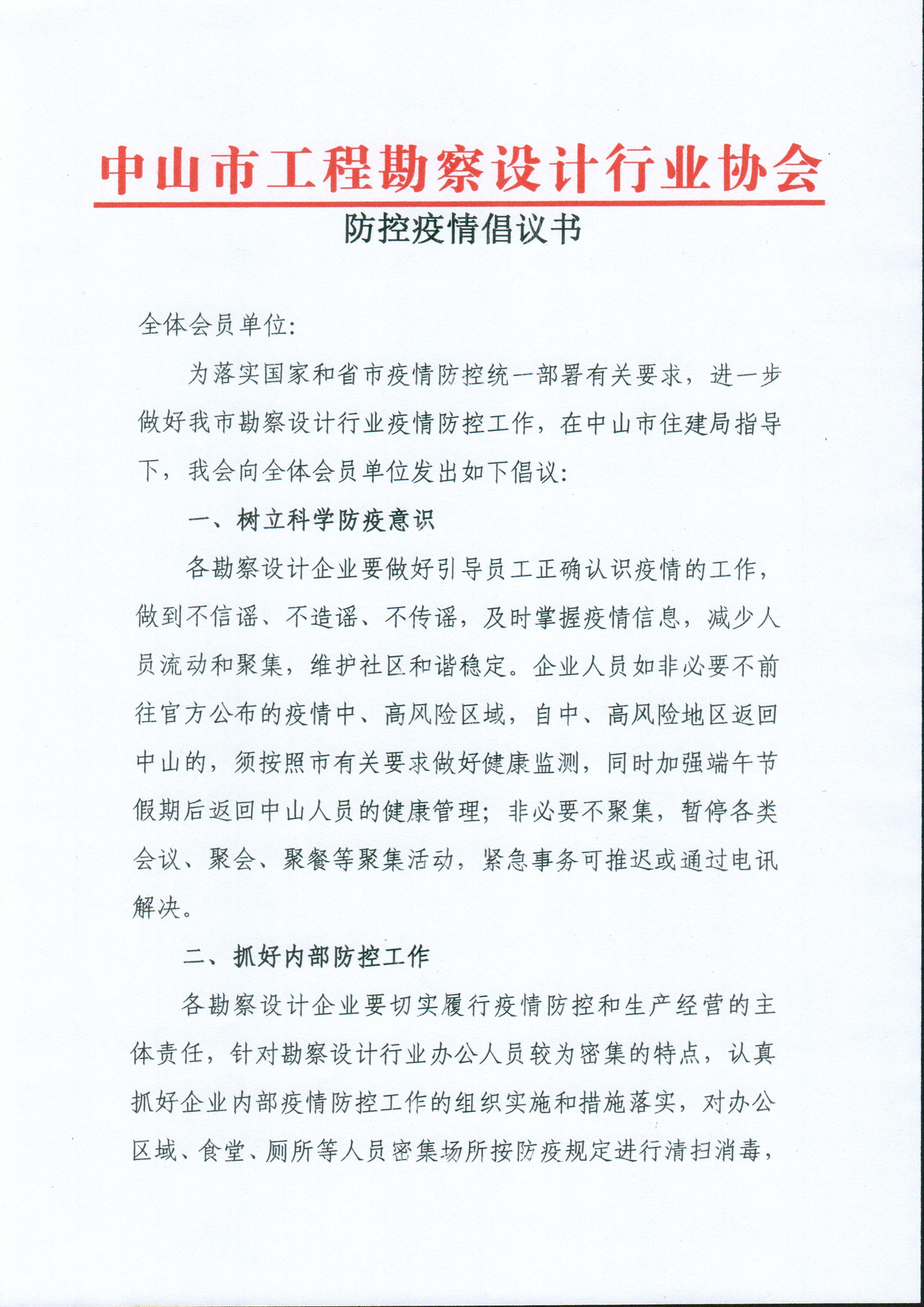 防控疫情倡議書