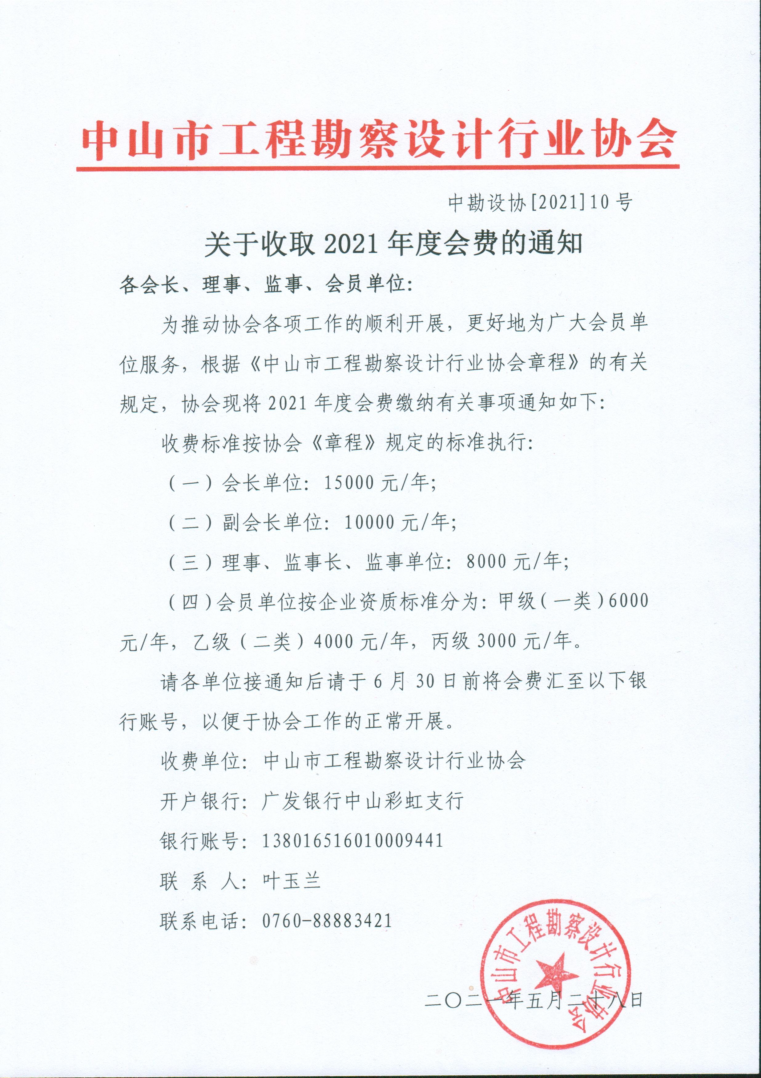 關(guān)于收取2021年度會(huì)費(fèi)的通知