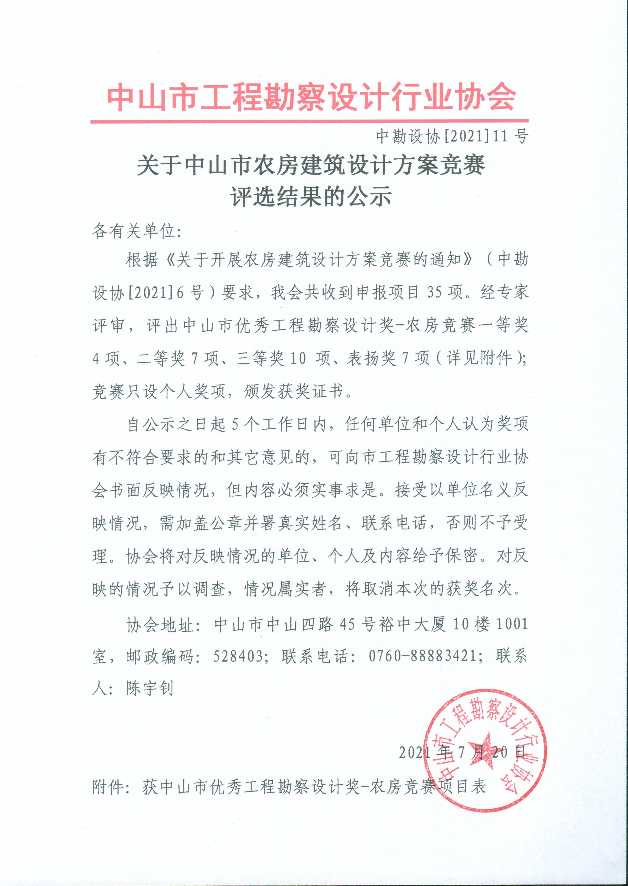 關(guān)于中山市農(nóng)房建筑設(shè)計方案競賽評選結(jié)果的公示