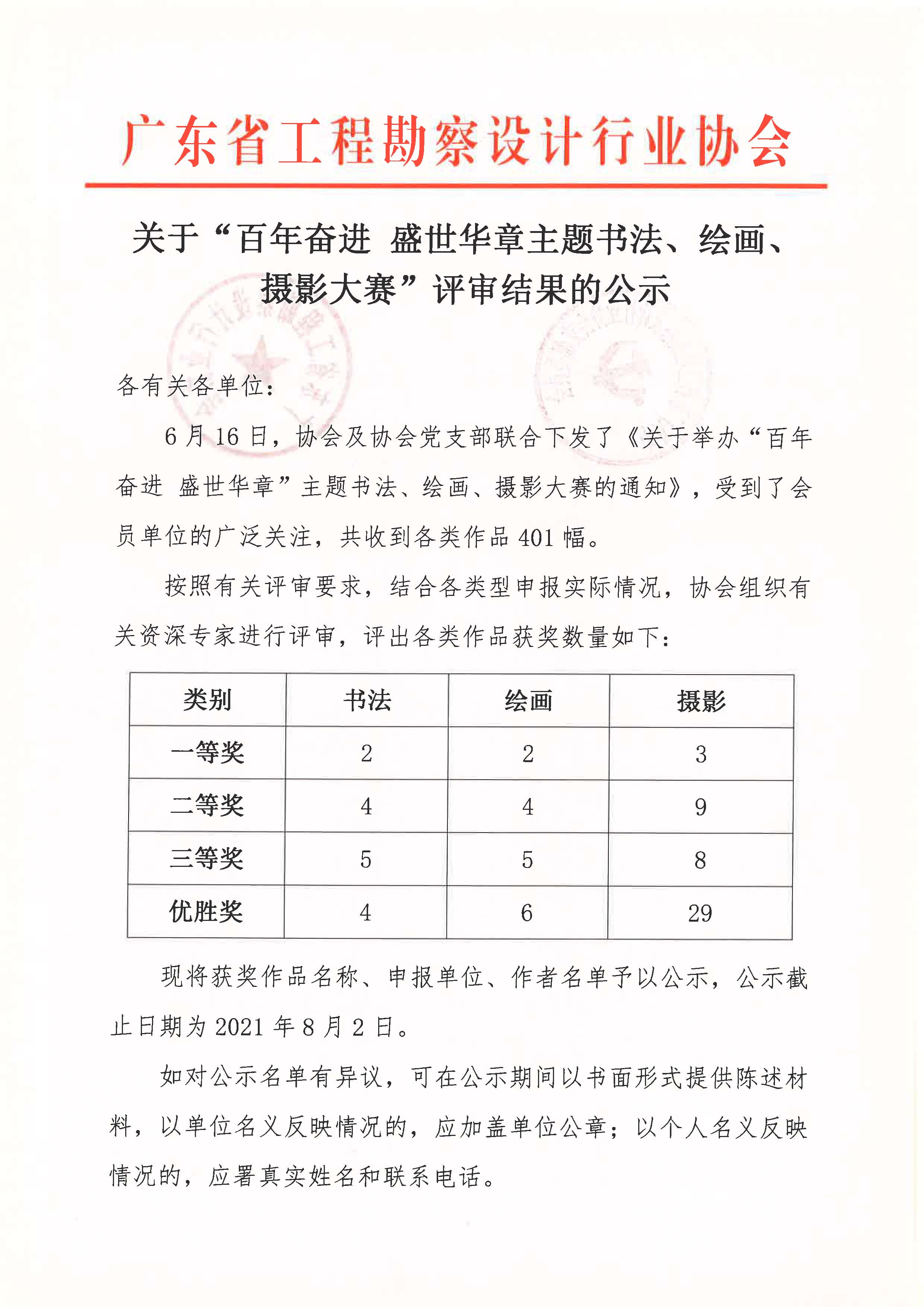 關(guān)于“百年奮進(jìn) 盛世華章主題書法、繪畫、攝影大賽”評(píng)審結(jié)果的公示