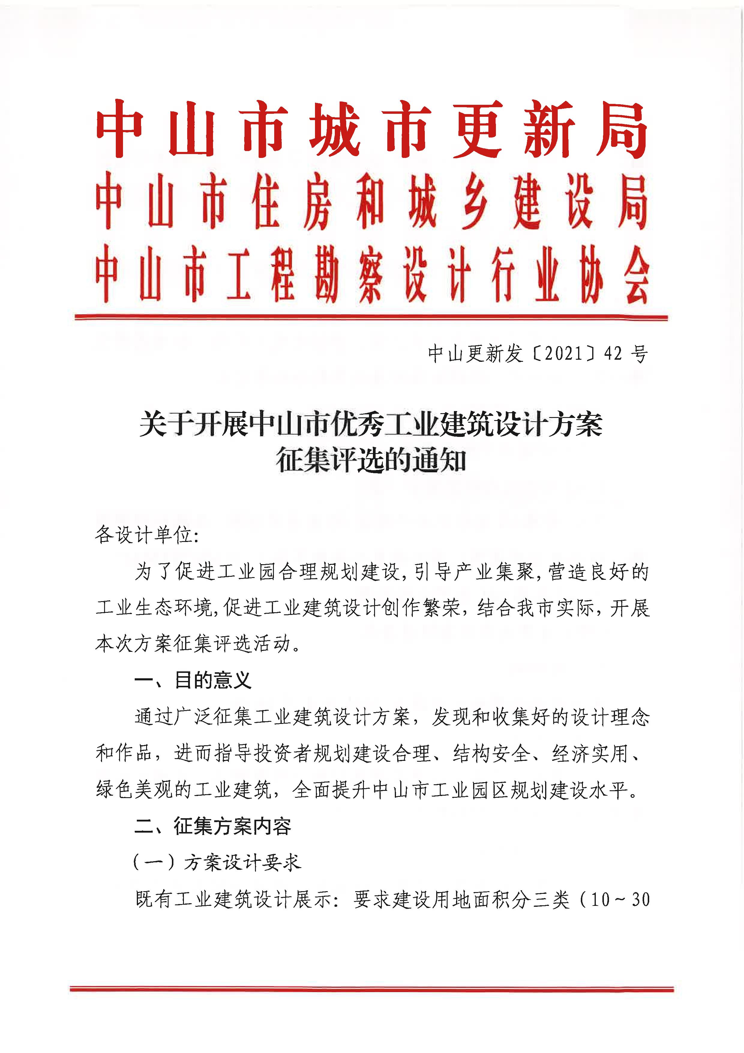 關于開展中山市優(yōu)秀工業(yè)建筑設計方案征集評選的通知
