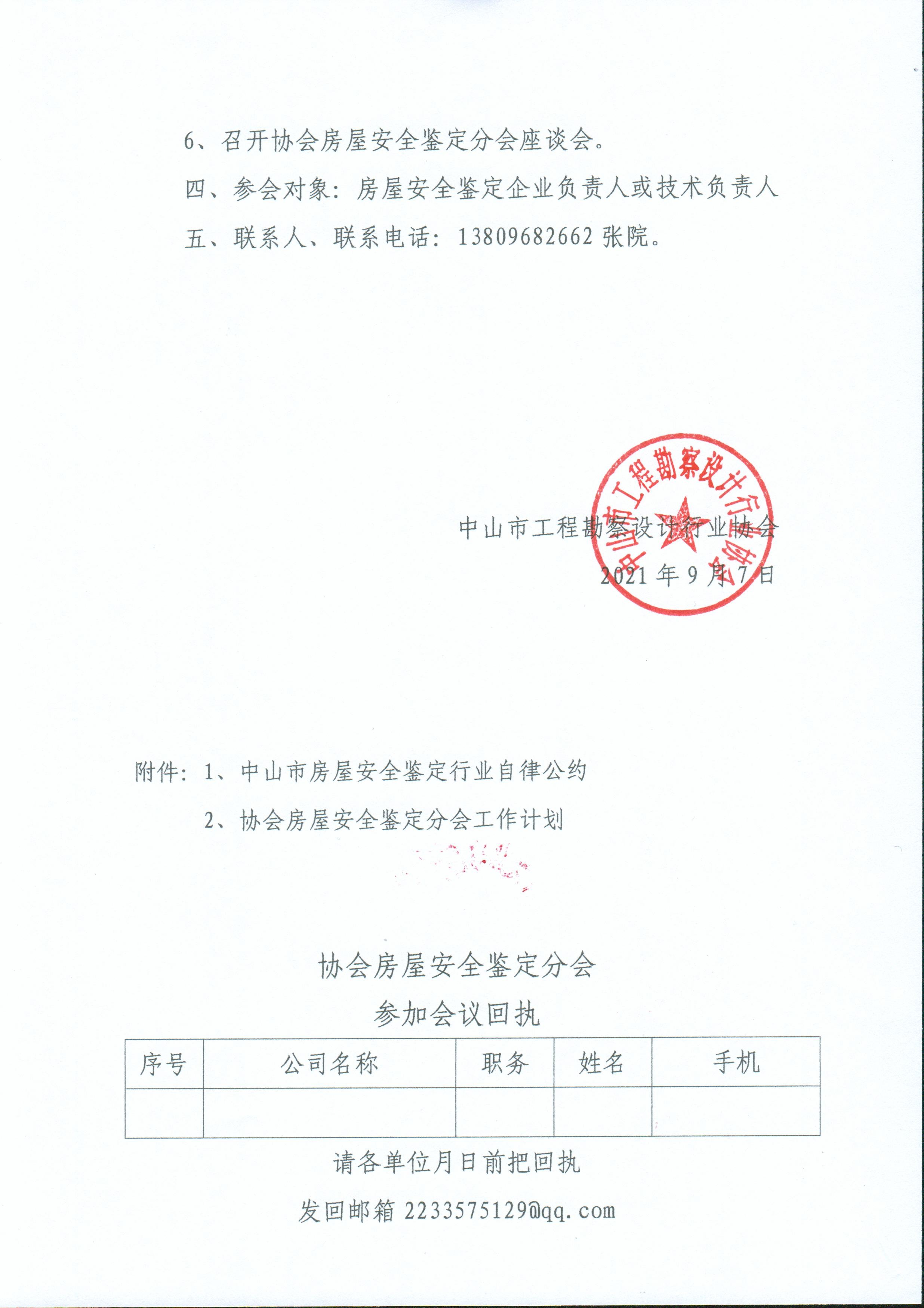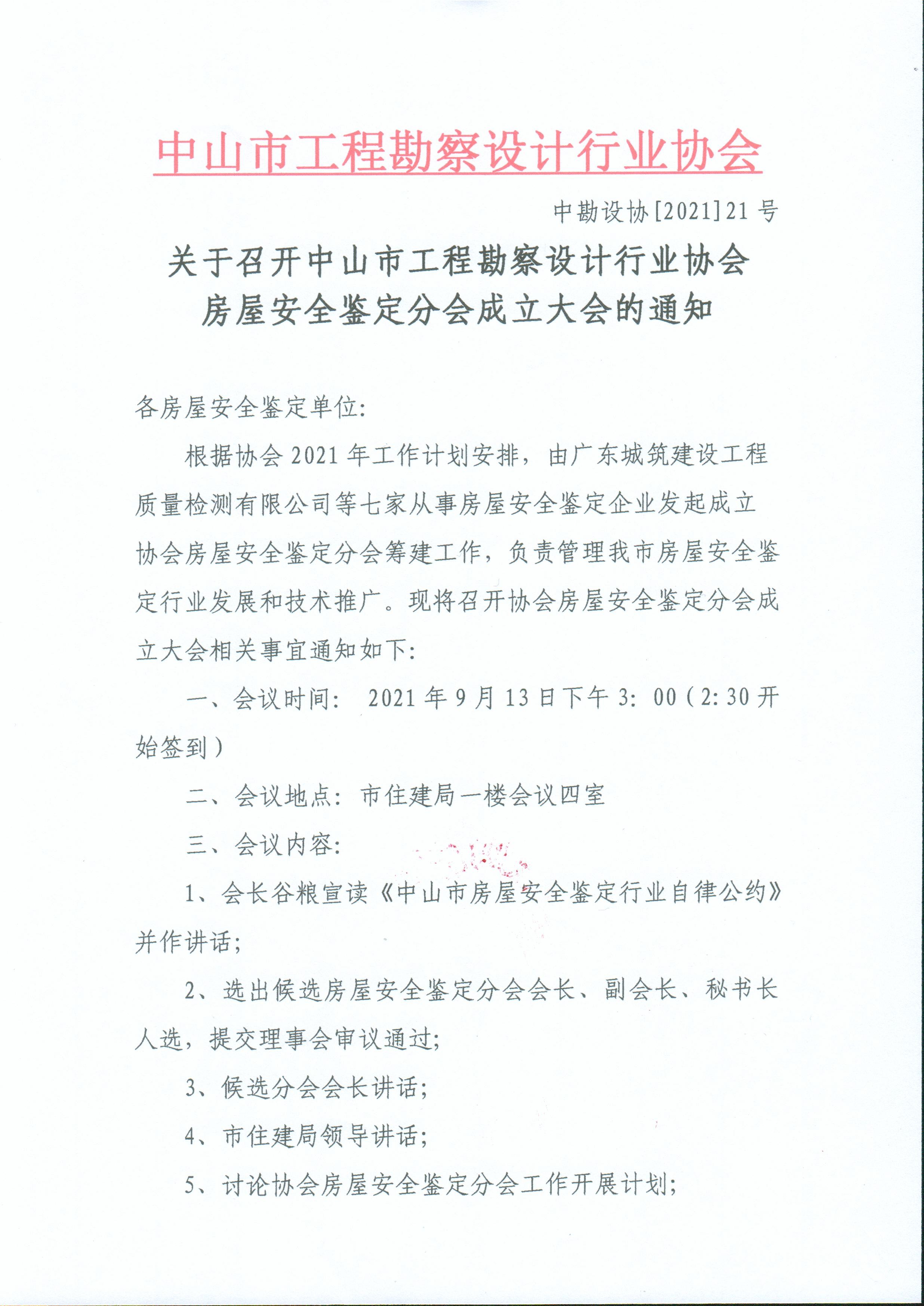 關(guān)于召開中山市工程勘察設(shè)計行業(yè)協(xié)會房屋安全鑒定分會成立大會的通知