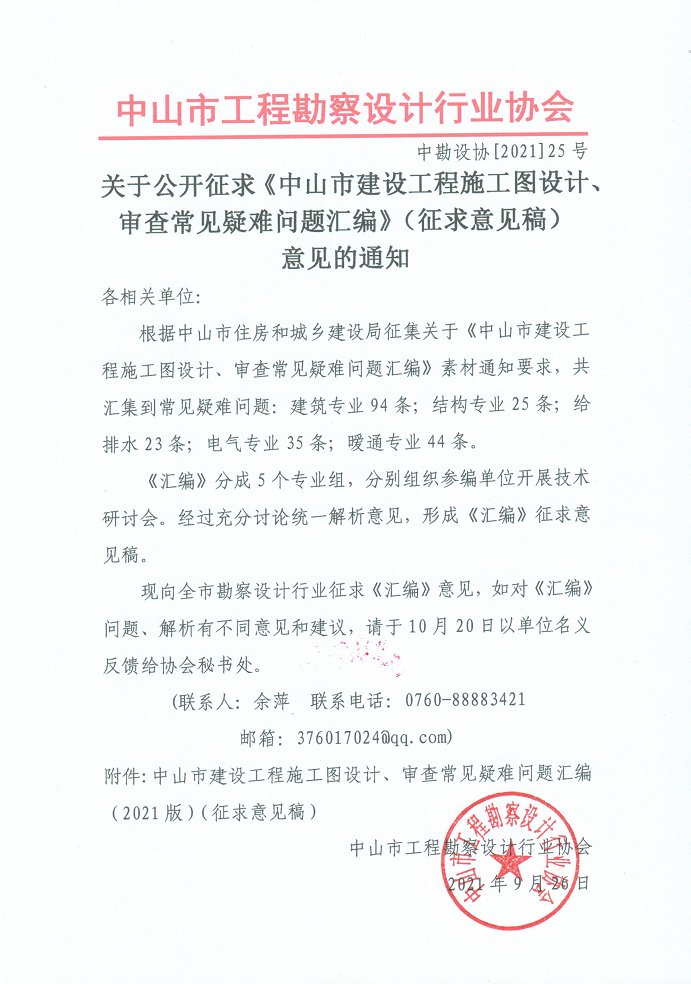關(guān)于公開征求《中山市建設(shè)工程施工圖設(shè)計(jì)、審查常見疑難問題匯編》(征求意見稿)意見的通知
