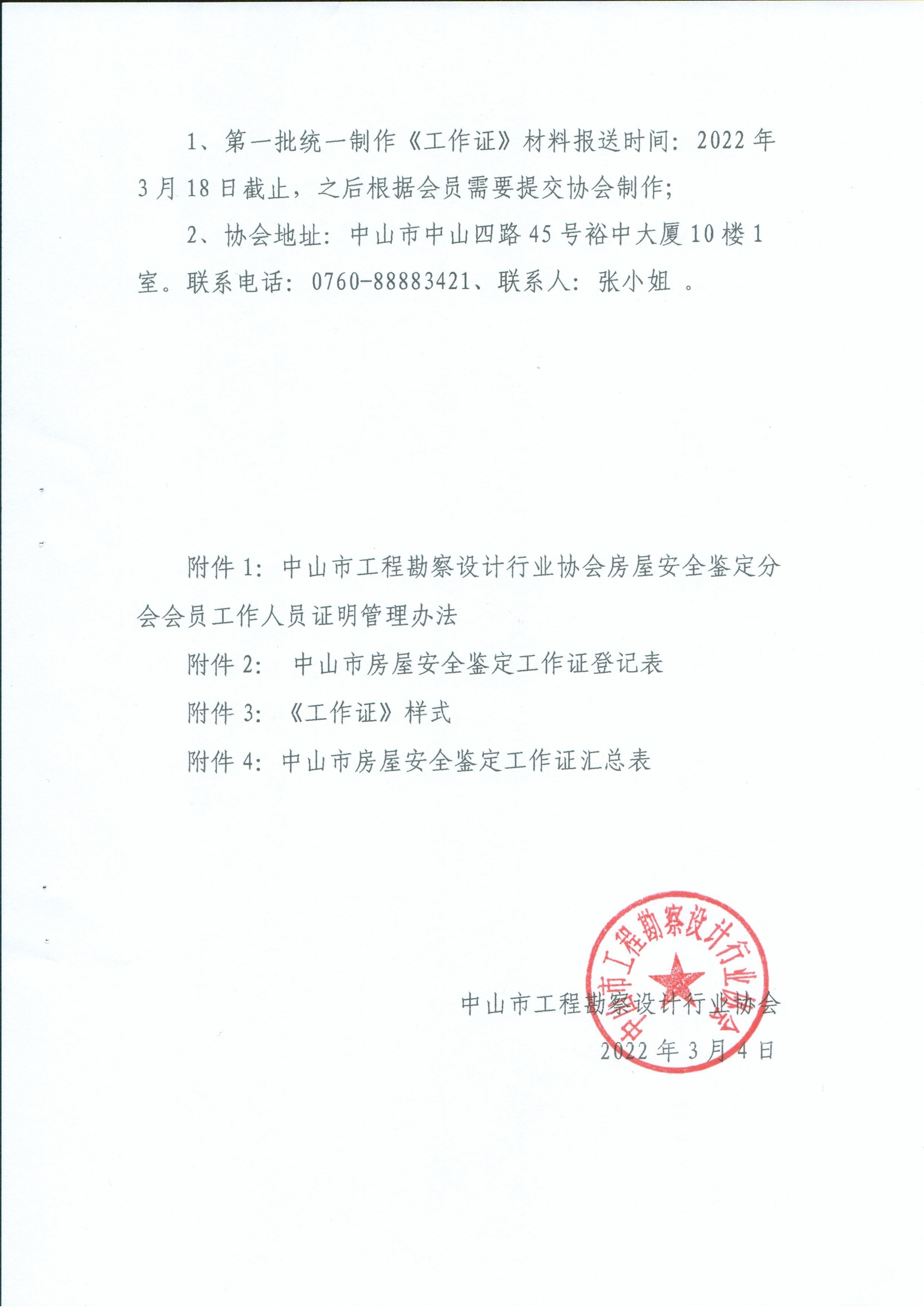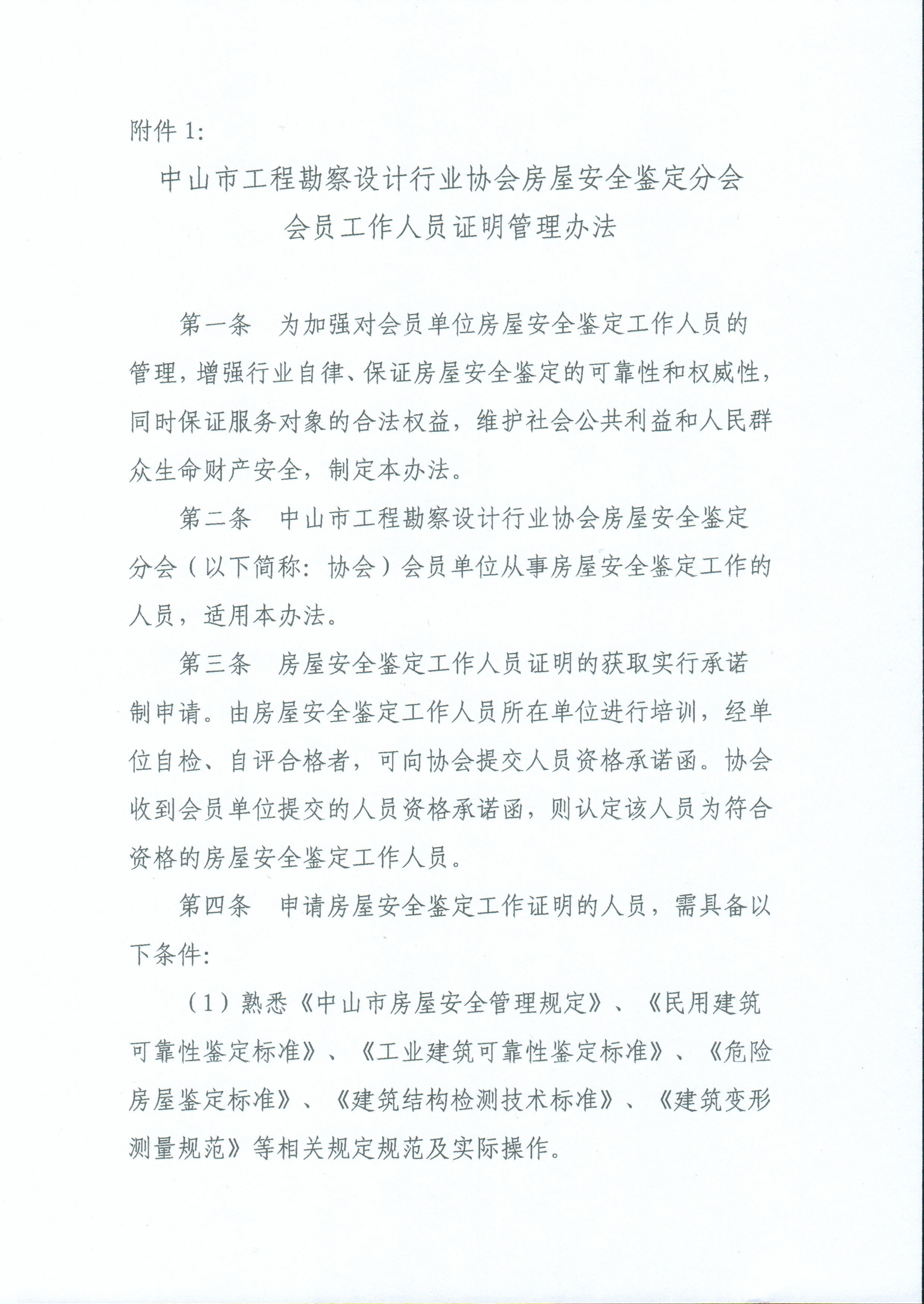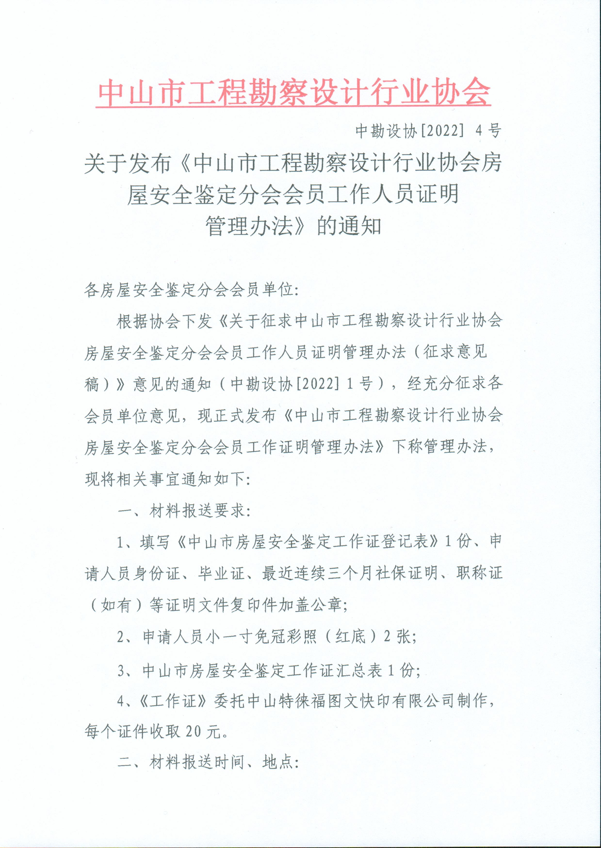 關于發(fā)布《中山市工程勘察設計行業(yè)協會房屋安全鑒定分會會員工作人員證明管理辦法》的通知