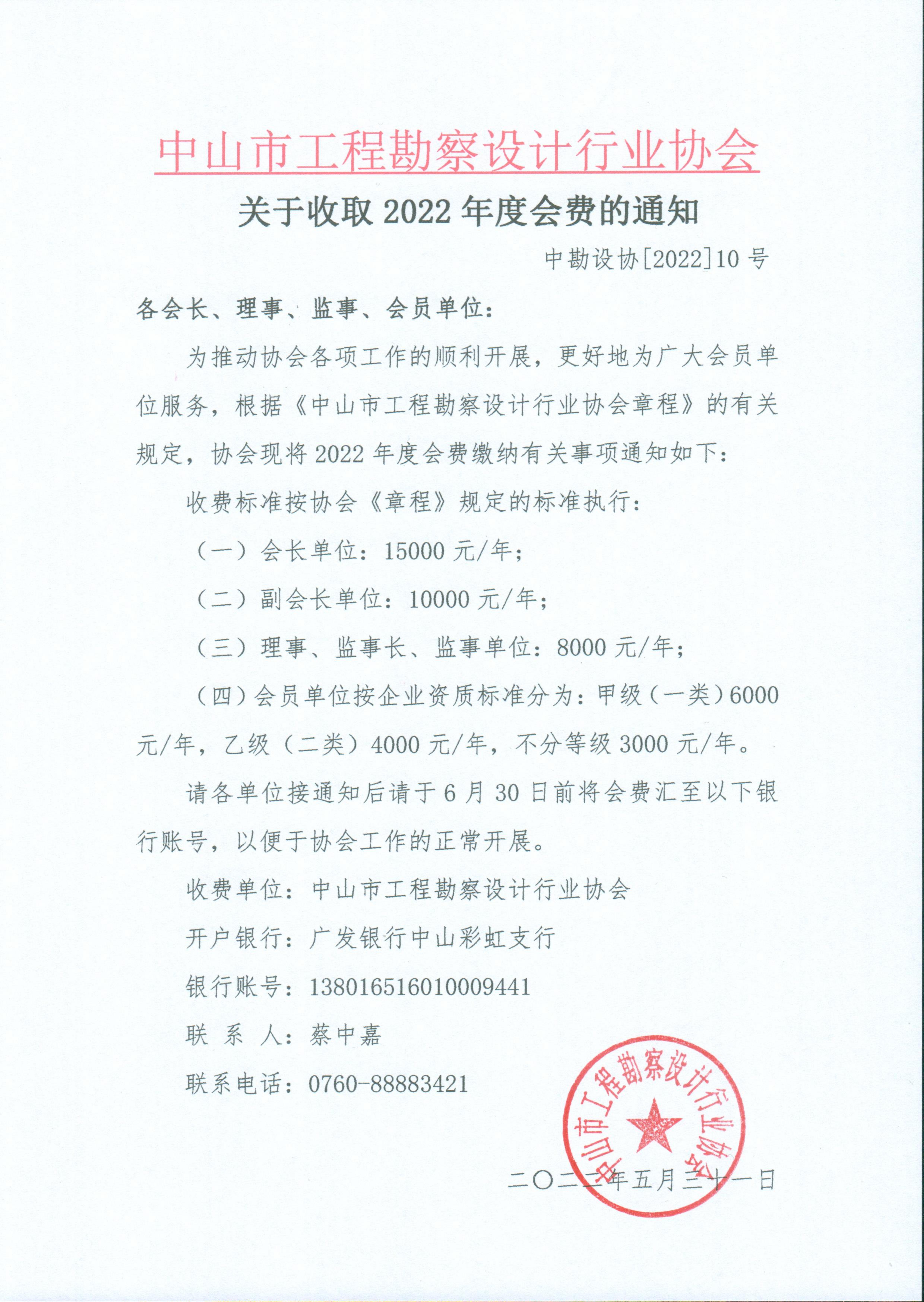 關(guān)于收取2022年度會(huì)費(fèi)的通知