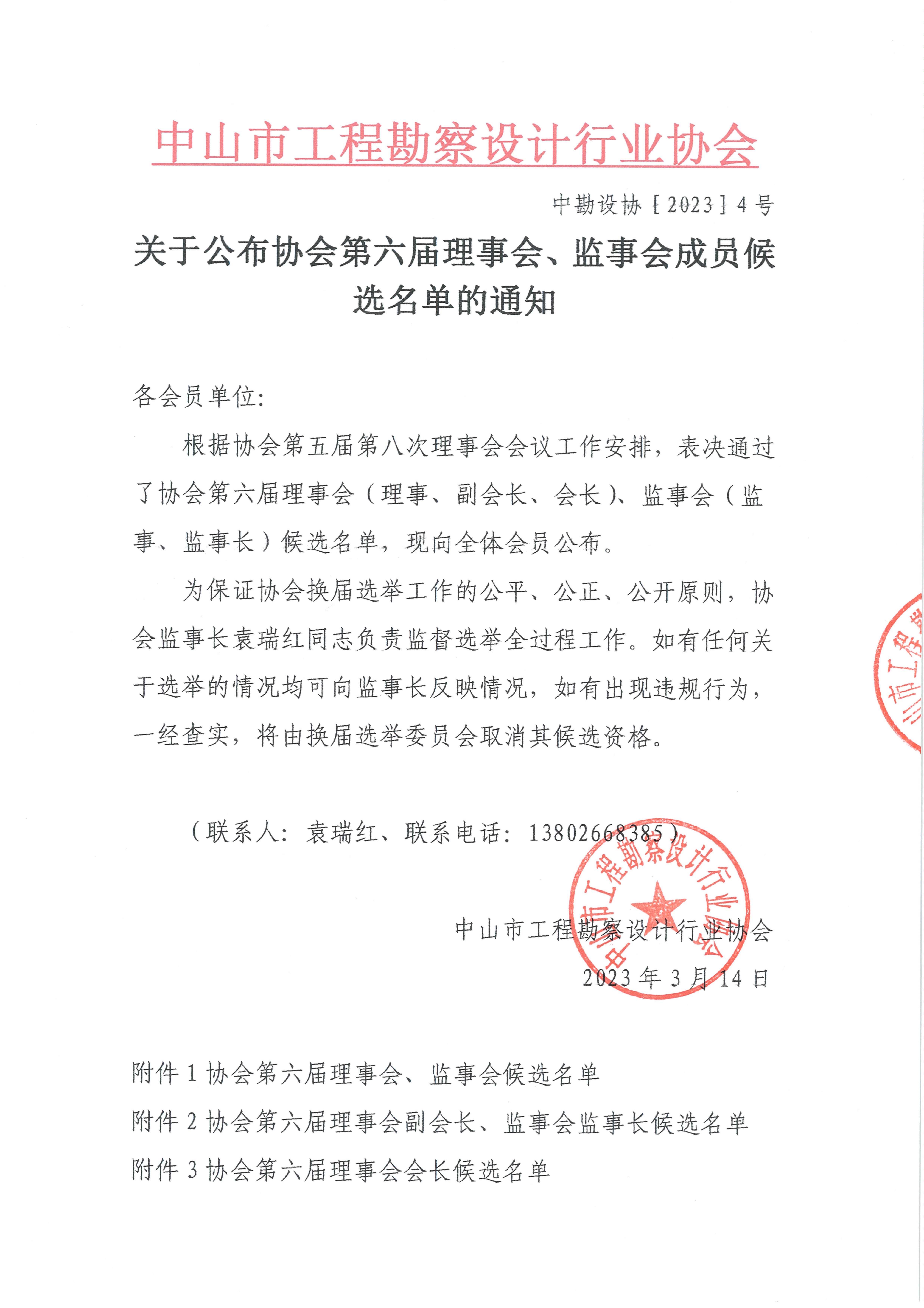 關(guān)于公布協(xié)會(huì)第六屆理事會(huì)、監(jiān)事會(huì)成員候選名單的通知