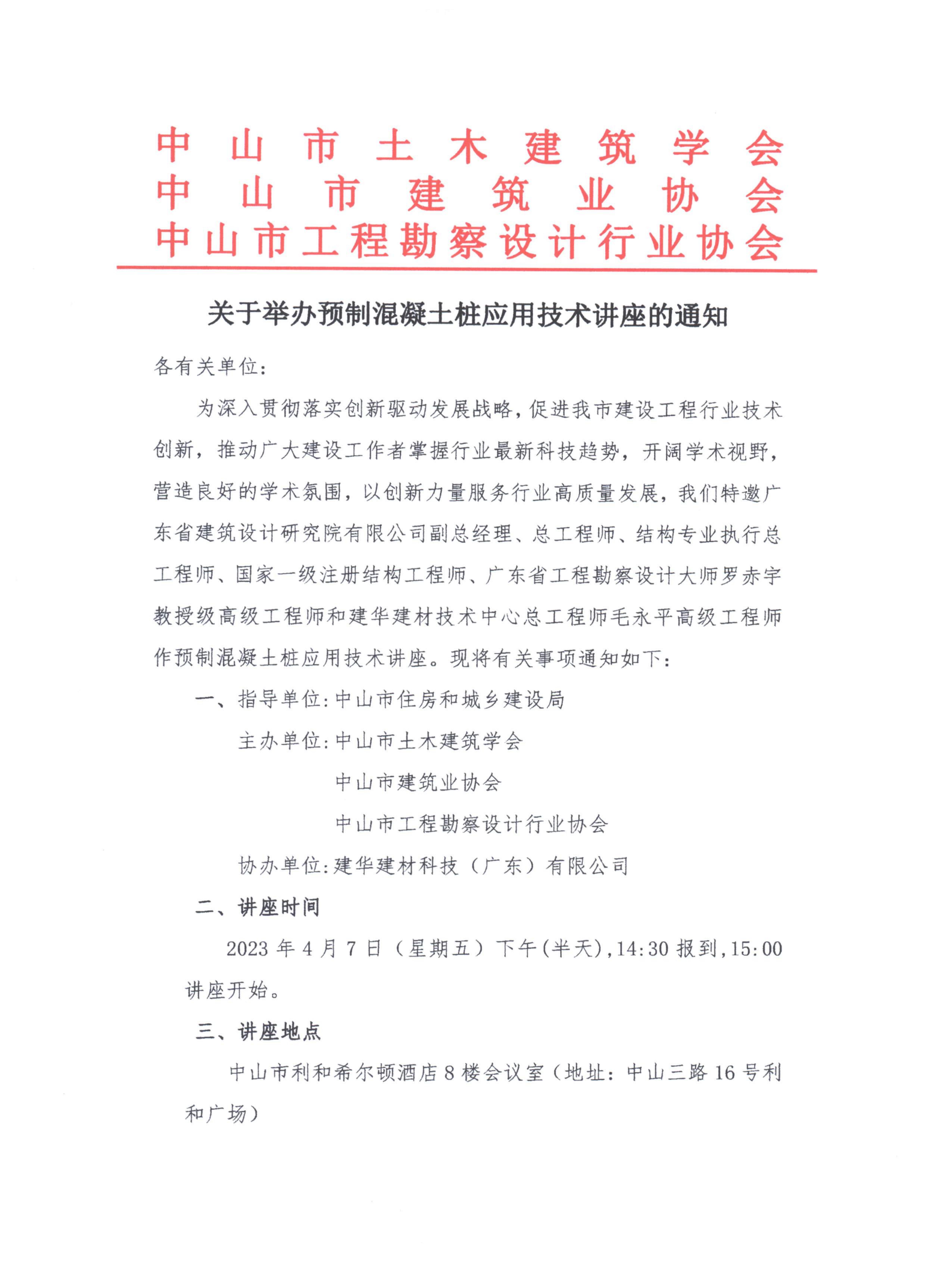 關(guān)于舉辦預(yù)制混凝土樁應(yīng)用技術(shù)講座的通知