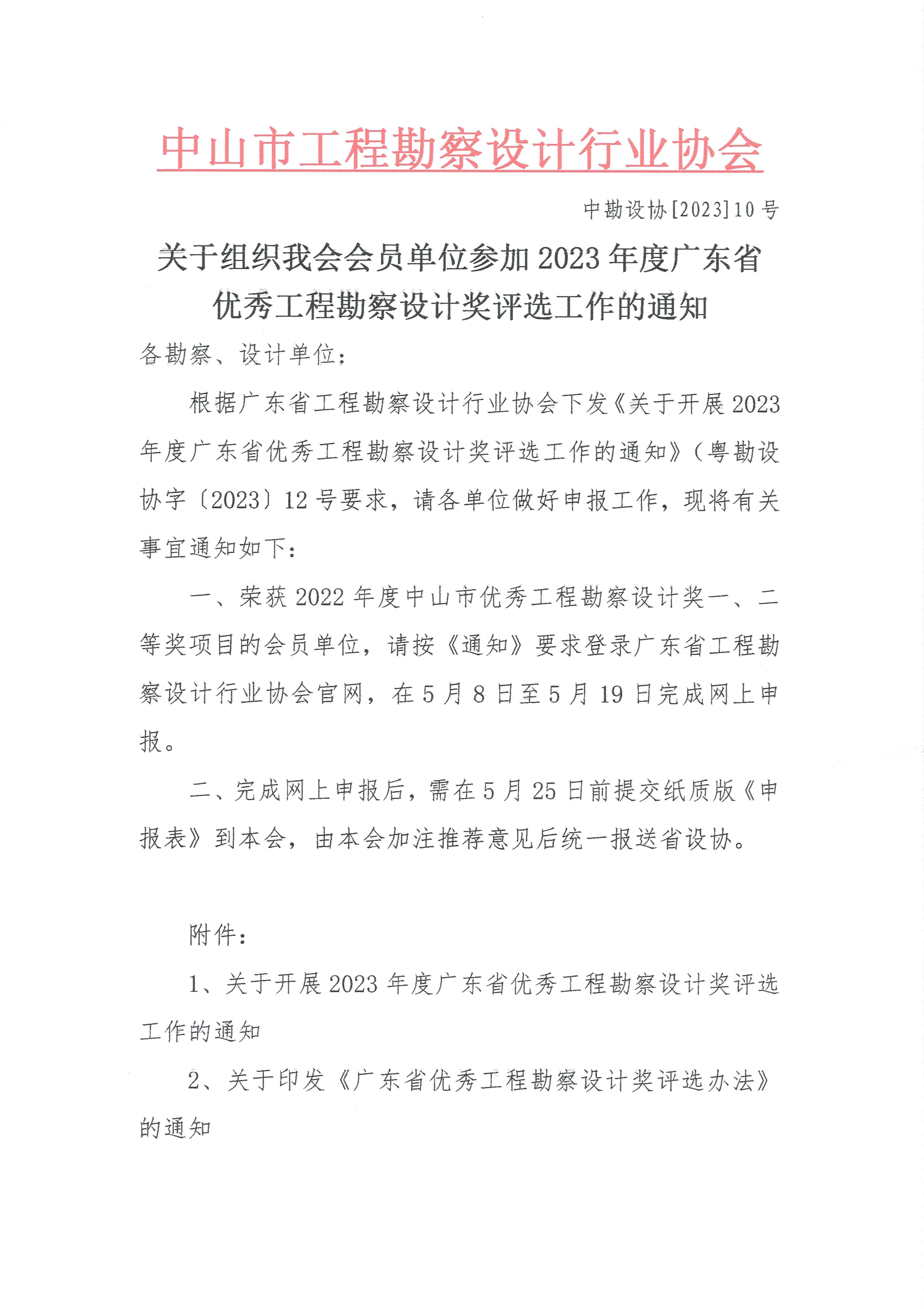 關(guān)于組織我會(huì)會(huì)員單位參加2023年度廣東省優(yōu)秀工程勘察設(shè)計(jì)獎(jiǎng)評(píng)選工作的通知