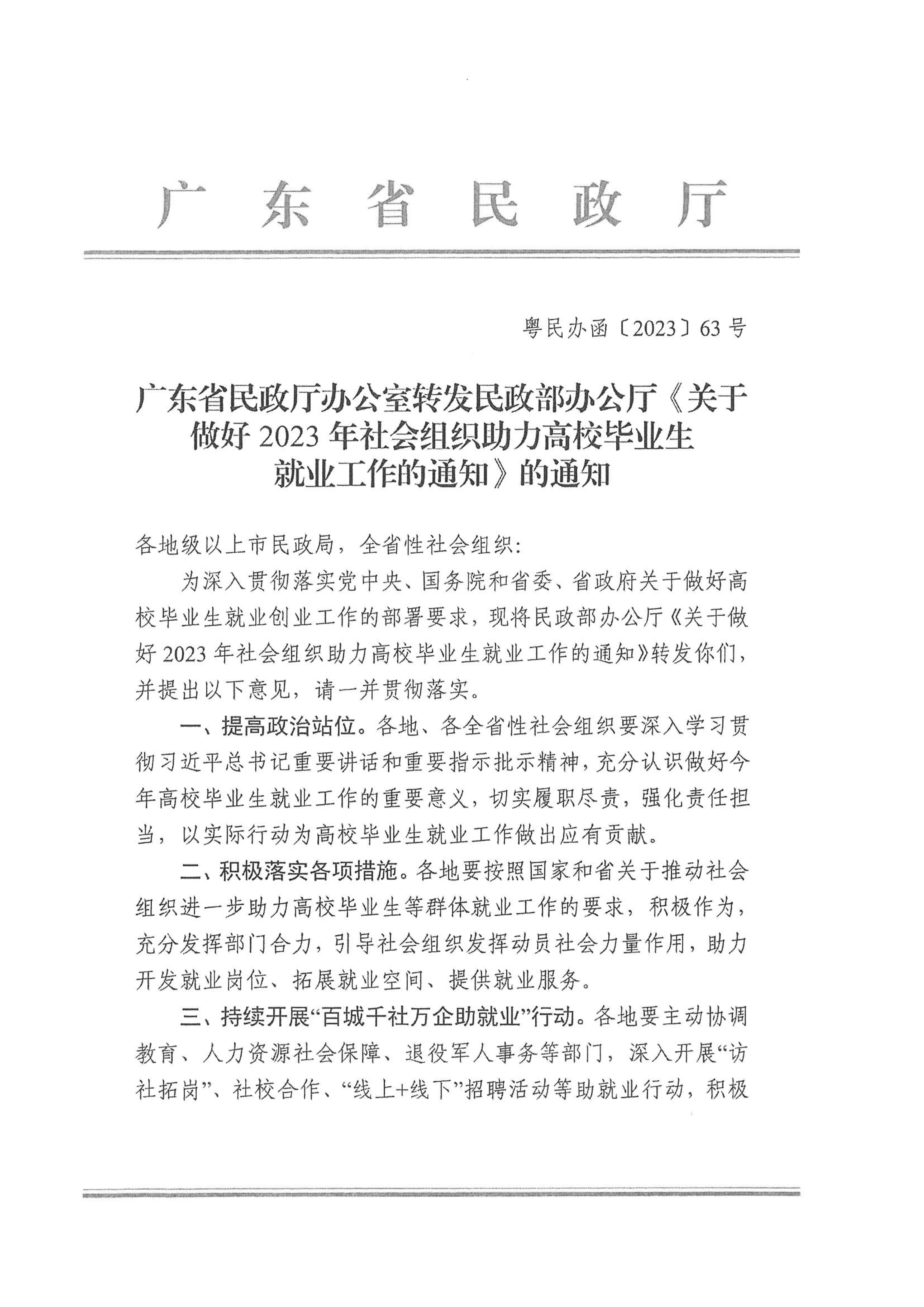 【轉(zhuǎn)發(fā)】關(guān)于轉(zhuǎn)發(fā)廣東省民政廳辦公室關(guān)于做好2023年社會(huì)組織助力高校畢業(yè)生就業(yè)工作的通知