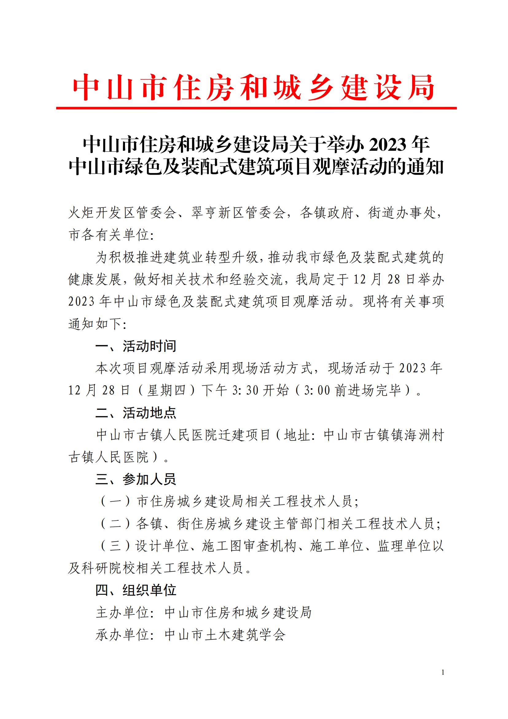【轉(zhuǎn)發(fā)】中山市住房和城鄉(xiāng)建設(shè)局關(guān)于舉辦2023年中山市綠色及裝配式建筑項(xiàng)目觀摩活動(dòng)的通知