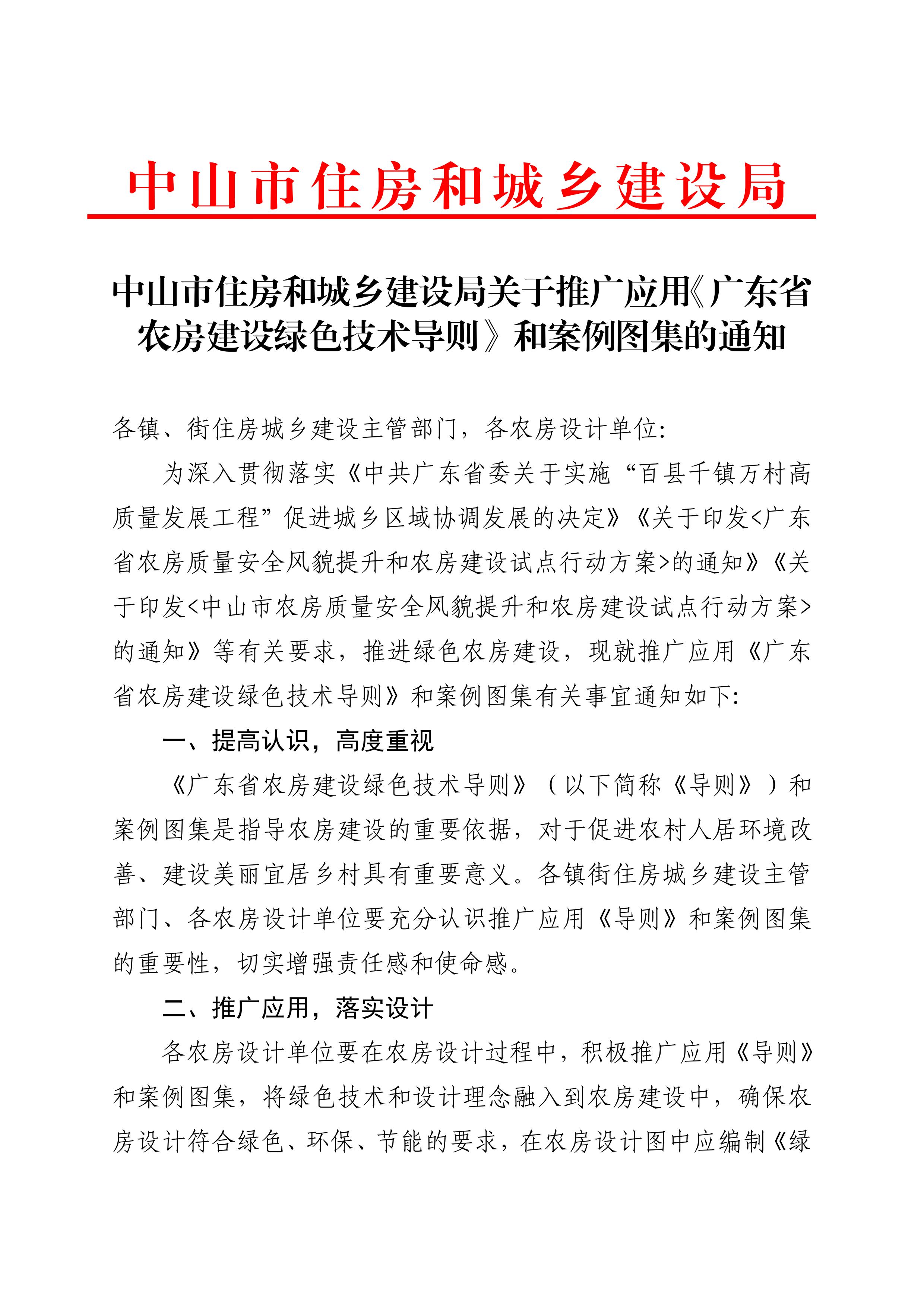 中山市住房和城鄉(xiāng)建設(shè)局關(guān)于推廣應(yīng)用《廣東省農(nóng)房建設(shè)綠色技術(shù)導(dǎo)則》和案例圖集的通知