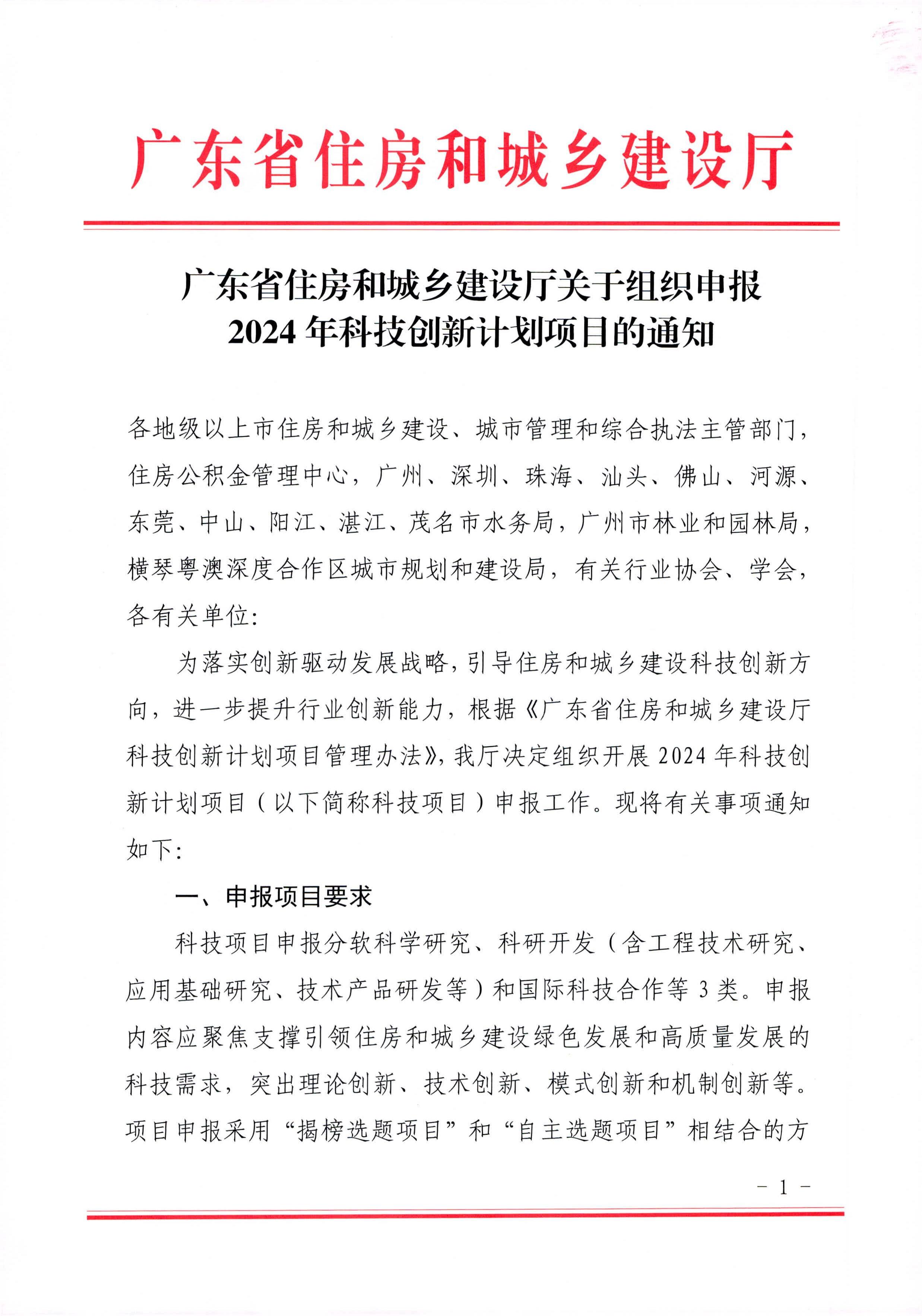 【轉(zhuǎn)發(fā)】廣東省住房和城鄉(xiāng)建設(shè)廳關(guān)于組織申報(bào)2024年科技創(chuàng)新計(jì)劃項(xiàng)目的通知