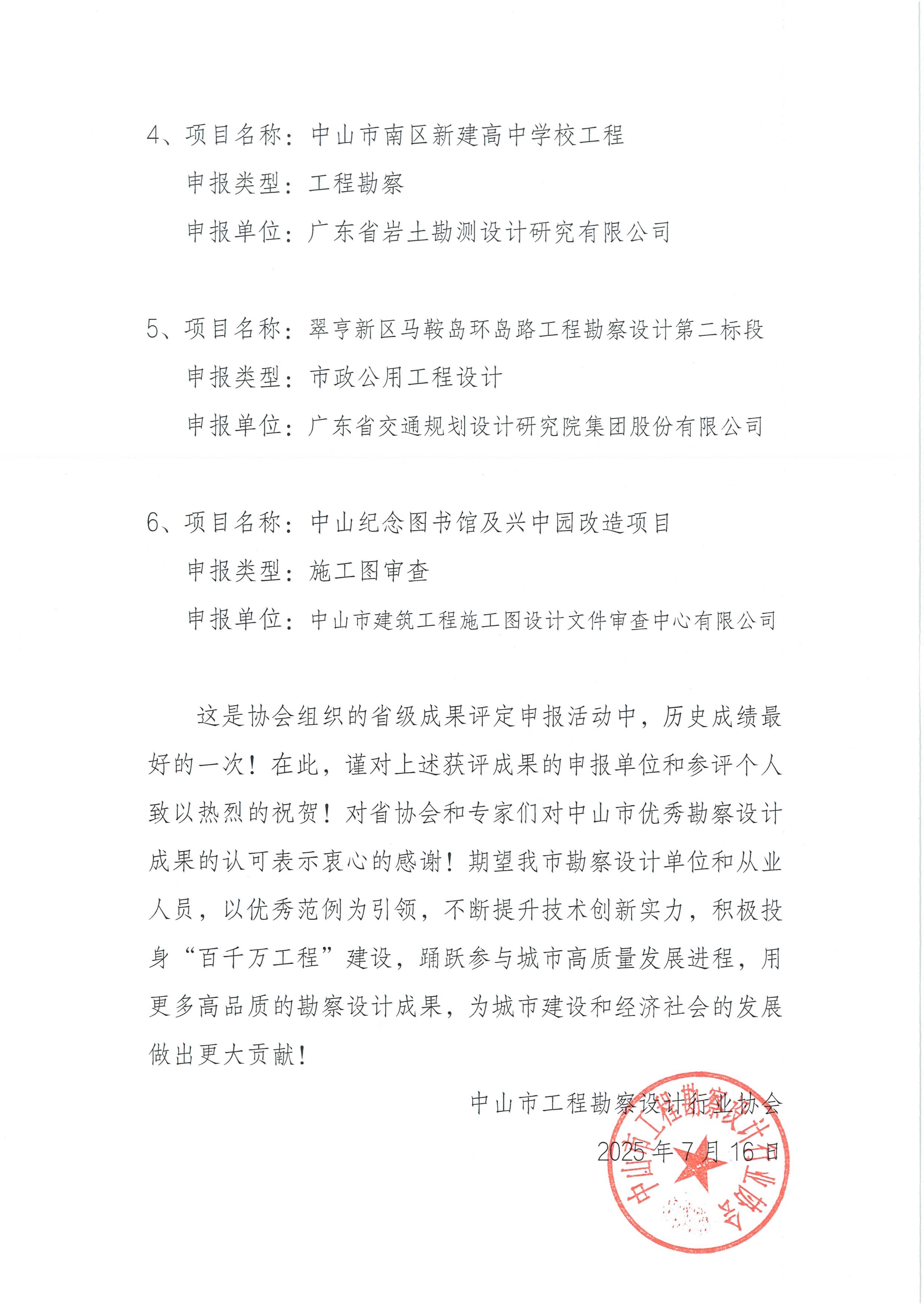 公布中山市勘察設(shè)計(jì)項(xiàng)目榮獲2025年廣東省優(yōu)秀工程勘察設(shè)計(jì)成果等級評定的名單
