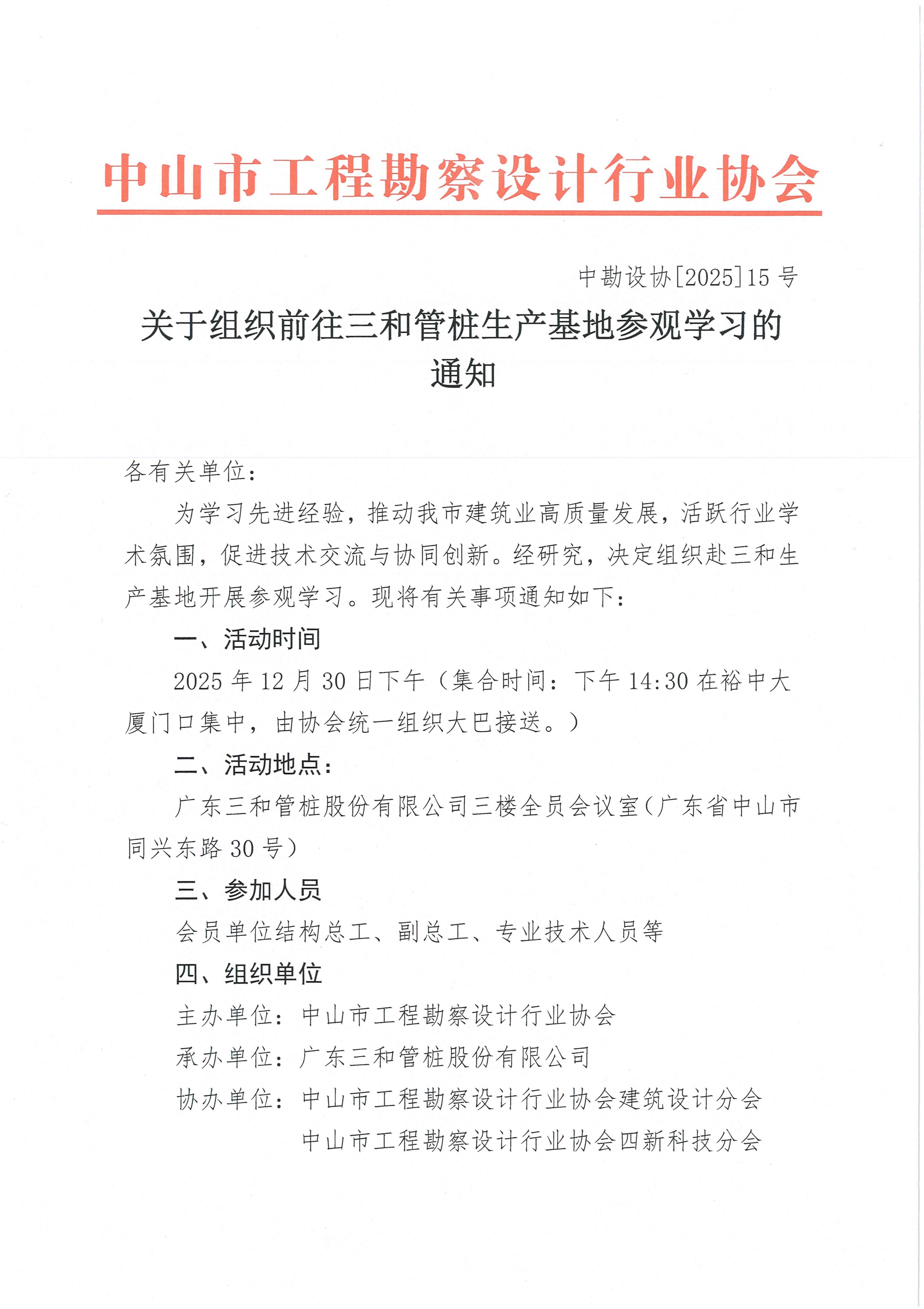 關(guān)于組織前往三和管樁生產(chǎn)基地參觀學(xué)習(xí)的通知